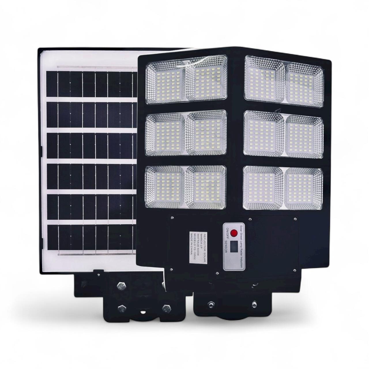 Luminária Holofote Solar 600W (Equivalência Lâmpada Incandescente) com controle remoto para funcionalidades padrões. Acionamento por detector de movimento!